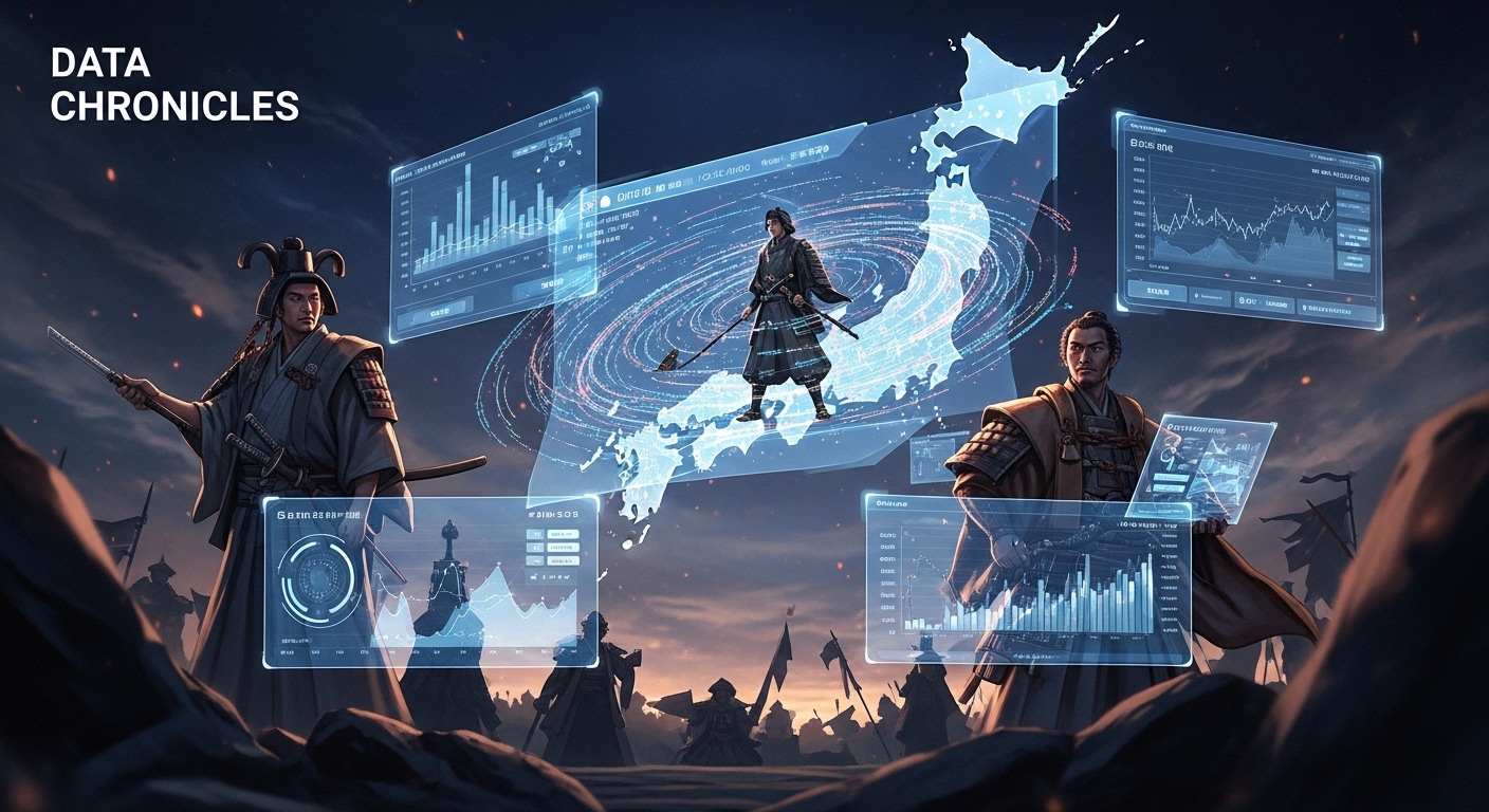 現在、50名の歴史人物・合計300問のクイズプロジェクトを進行中です。このページでは、その第1弾として「徳川家康・織田信長・豊臣秀吉・武田信玄・伊達政宗」の5名に関する皆さんの正答率をリアルタイムでグラフ化しています。